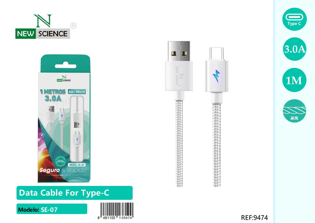 Cable USB a Type C 3.0A 1M SE-07 - Blanco está agotado y se enviará tan pronto como vuelva a estar disponible.