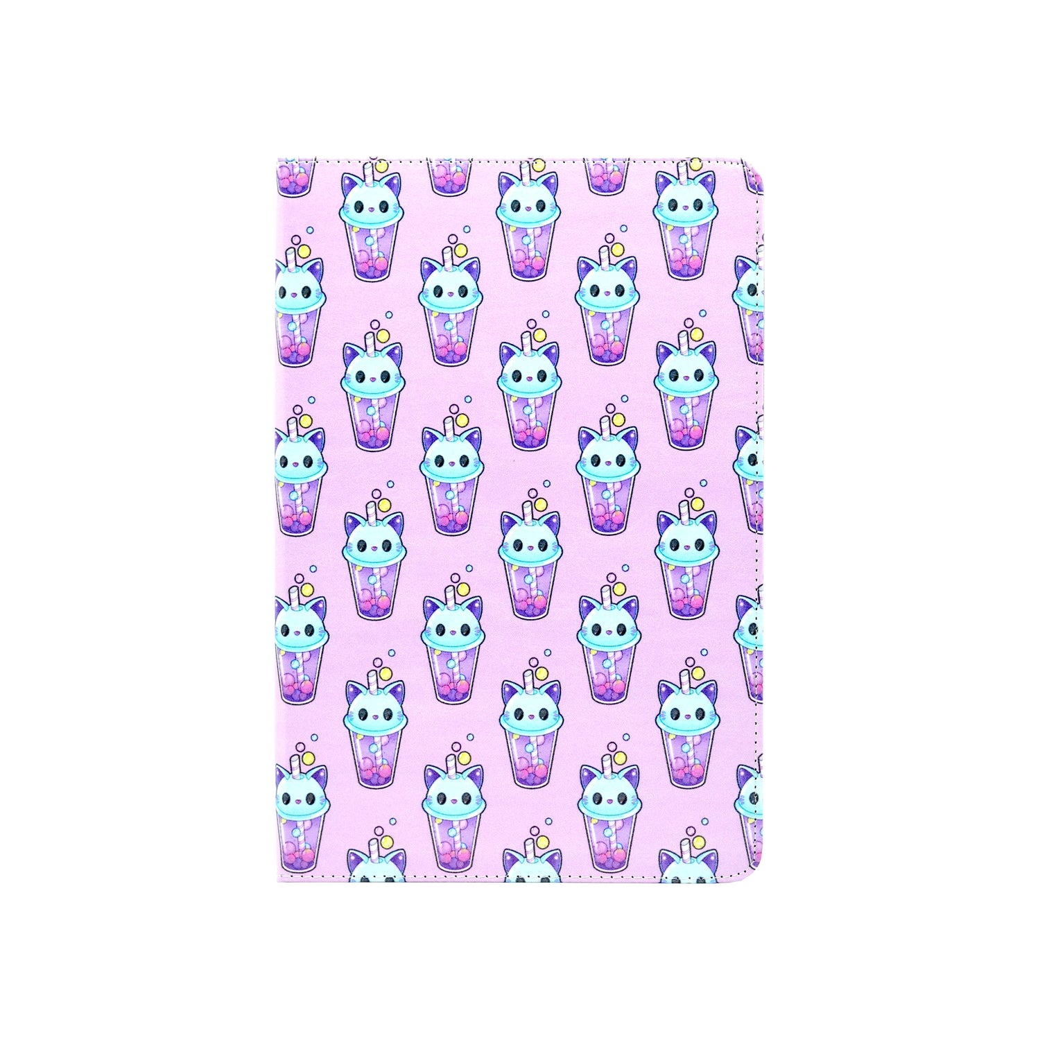 Funda de material polipiel, giratoria de 360 grados. Tiene rayas antideslizantes y soporta los ángulos horizontal y vertical. La banda elástica externa mantiene la tableta cerrada de forma segura cuando no está en uso, protege bien su tableta de arañazos diarios y golpes.
