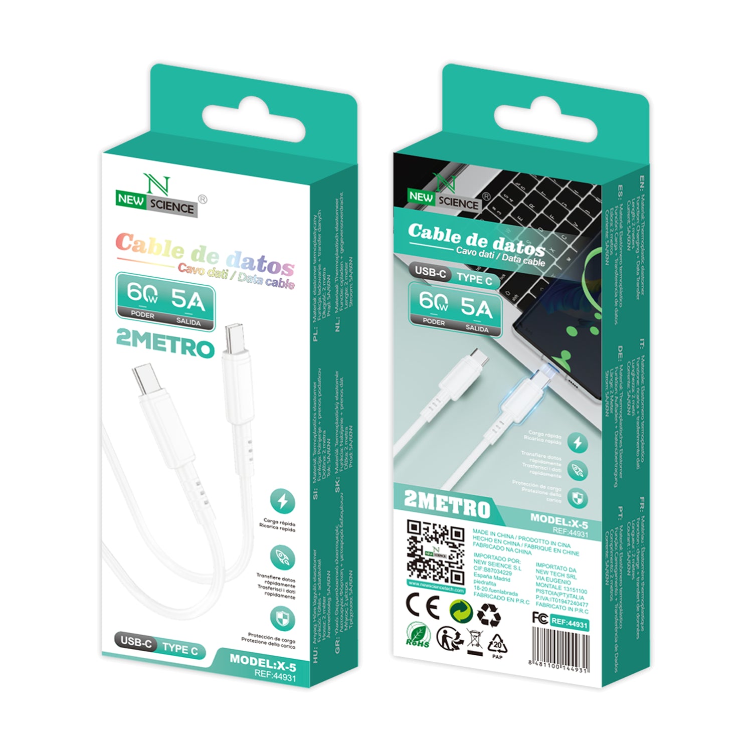 Cable PD USB-C a Type C 5A/60W 2M X-5