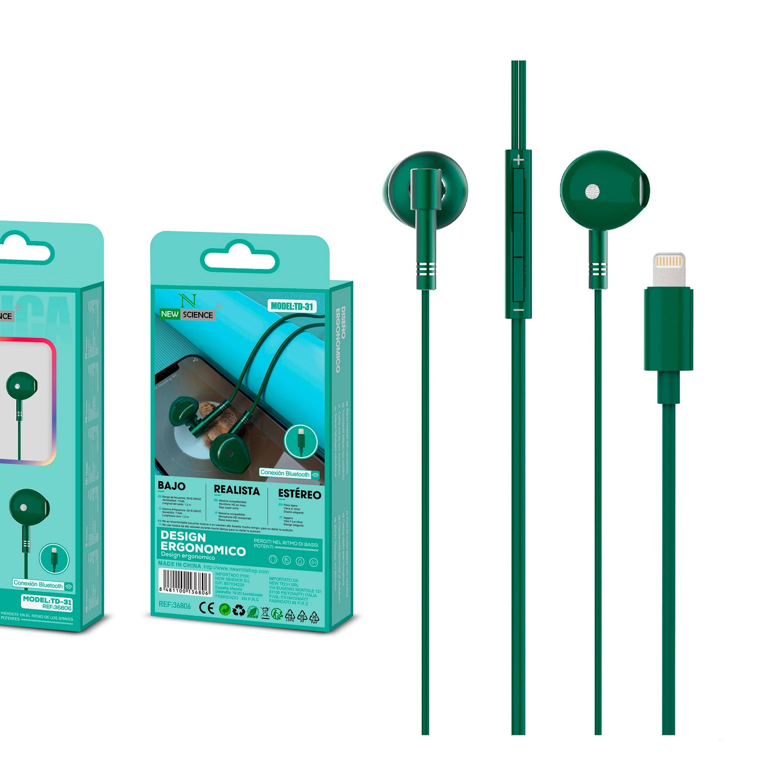 Auriculares conector lightning para iPhone, con coneción vía bluetooth (enchufar y encender bluetooth para enlazar)
