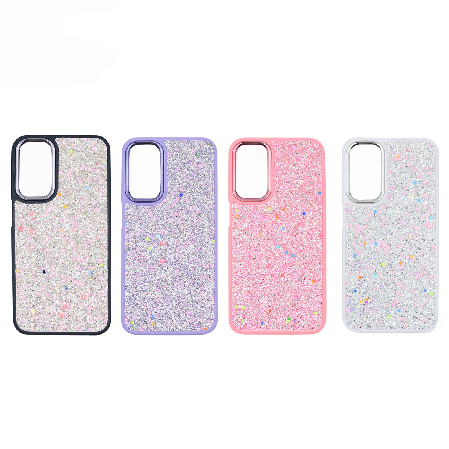Funda para móvil fabricado con material de silicona de alta calidad y purpurina en forma de escamas, incrustadas en la parte trasera de la carcasa. Las partes que cubren los botones del teléfono están hechos con silicona flexible, permitiendo una mayor comodidad y adaptabilidad en el uso diario del dispositivo.