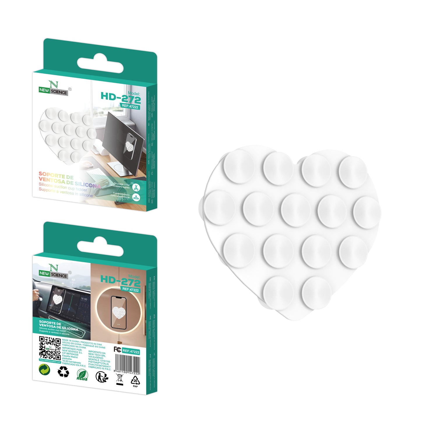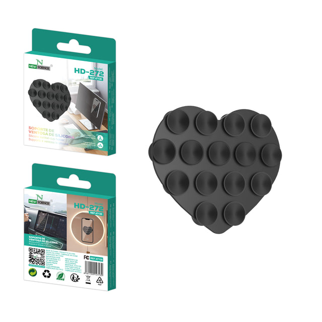 El HD-272 combina funcionalidad y diseño con su forma de corazón y ventosas de silicona de alta adherencia. Perfecto para fijar teléfonos móviles, tablets u otros objetos ligeros sobre superficies lisas como vidrio, cerámica, metal o plástico. Es reutilizable, portátil y no deja residuos al retirarlo. Disponible en varios colores para aportar un toque decorativo y práctico a tu espacio.