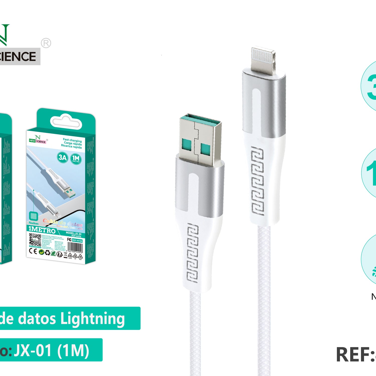 Carga rápida de hasta 3A, 1 Metro de longitud.