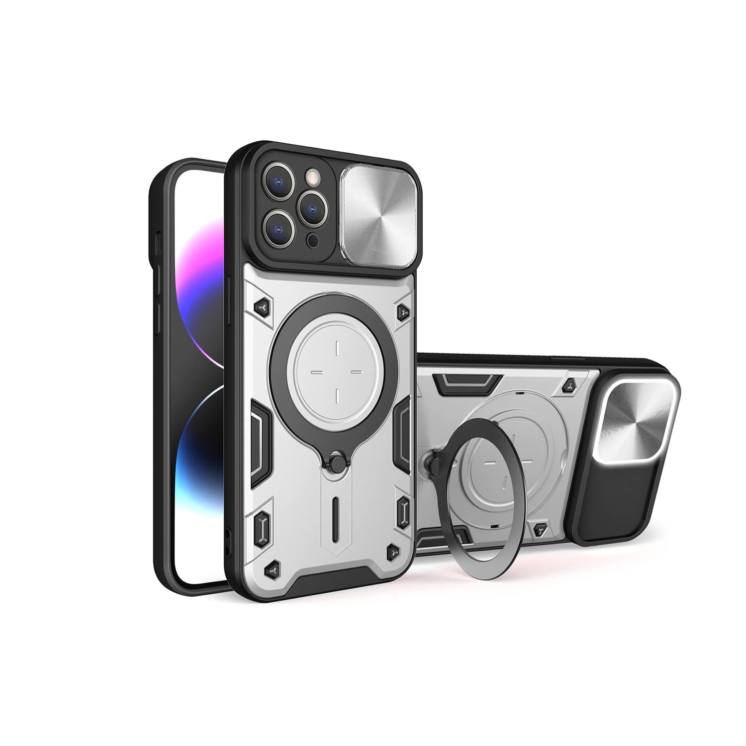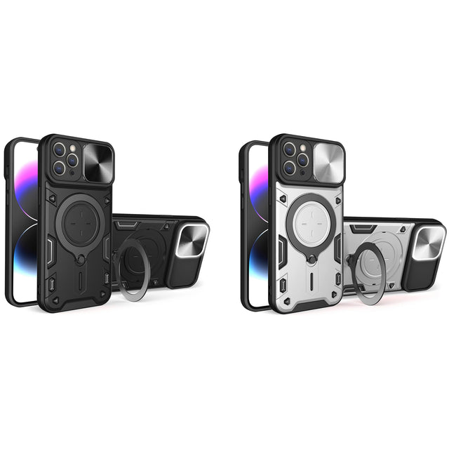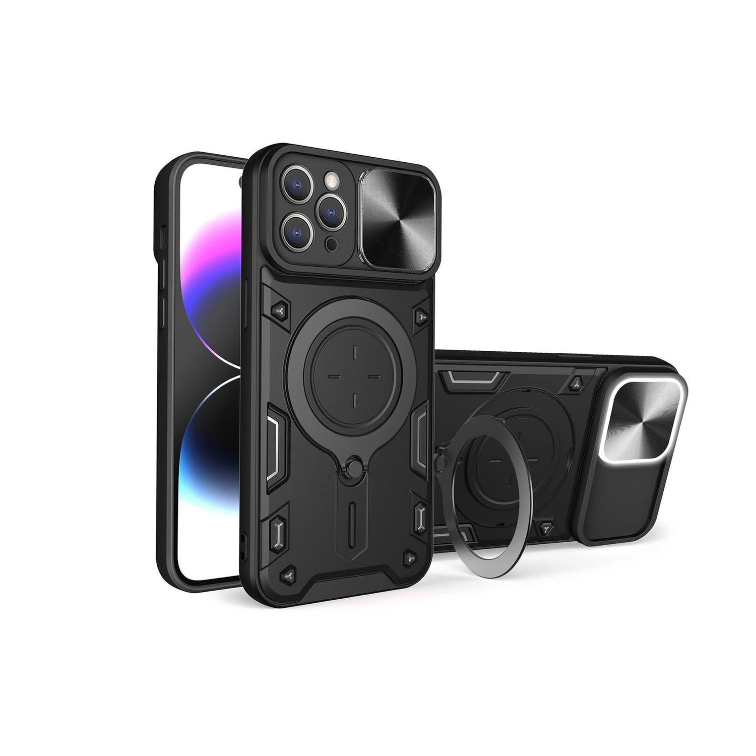 Esta carcasa con soporte anillo y cámara deslizante está diseñada para mejorar la experiencia de uso del teléfono. El soporte en forma de anillo permite sujetar el dispositivo con facilidad, ofreciendo una visualización cómoda en modo horizontal para ver videos, realizar videollamadas u otras actividades. El diseño deslizante de la cámara brinda una protección adicional, evitando rayones o daños en el módulo de la cámara. Además de ofrecer una protección eficaz contra caídas y arañazos, esta funda combina estilo y funcionalidad, siendo el complemento perfecto para tu teléfono.