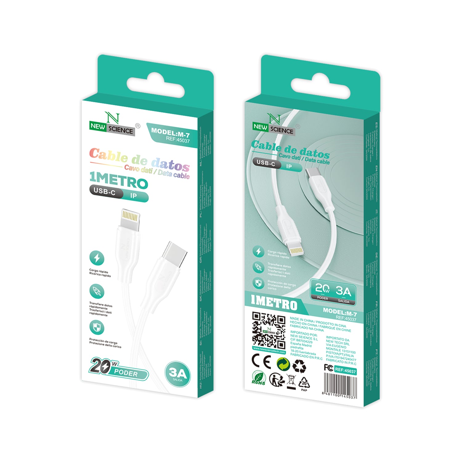 Cable PD USB-C a Lightning iPhone 3A/20W 1M M-7