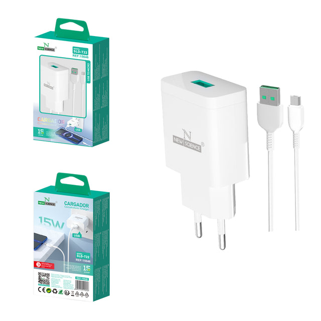 Micro USB Charger 3A/15W is a compact and efficient charger designed to provide fast charging to devices with a Micro USB port. With a 3A output and 15W power, it guarantees fast and safe charging for smartphones, tablets and other devices that use this connection. Its small and easy-to-use design makes it a practical option to carry on a daily basis.