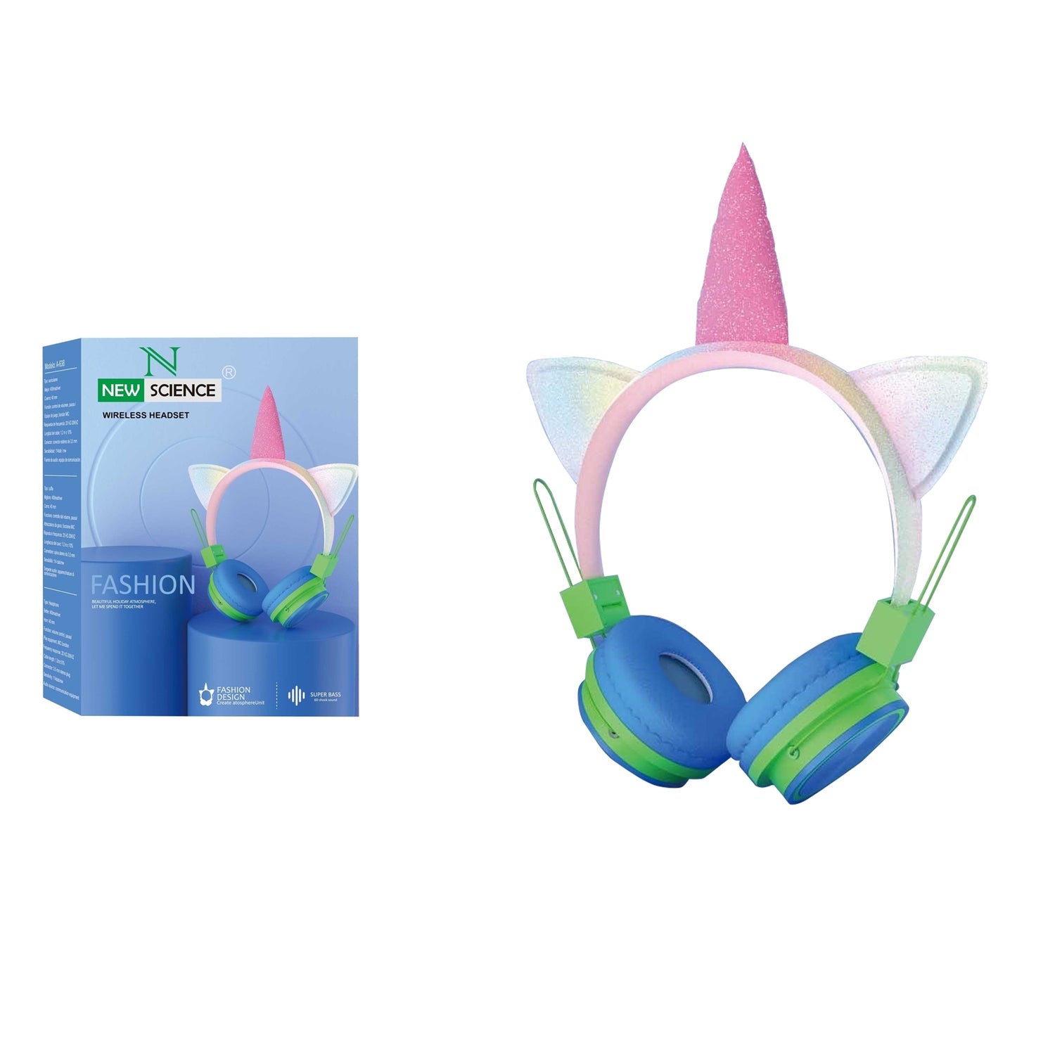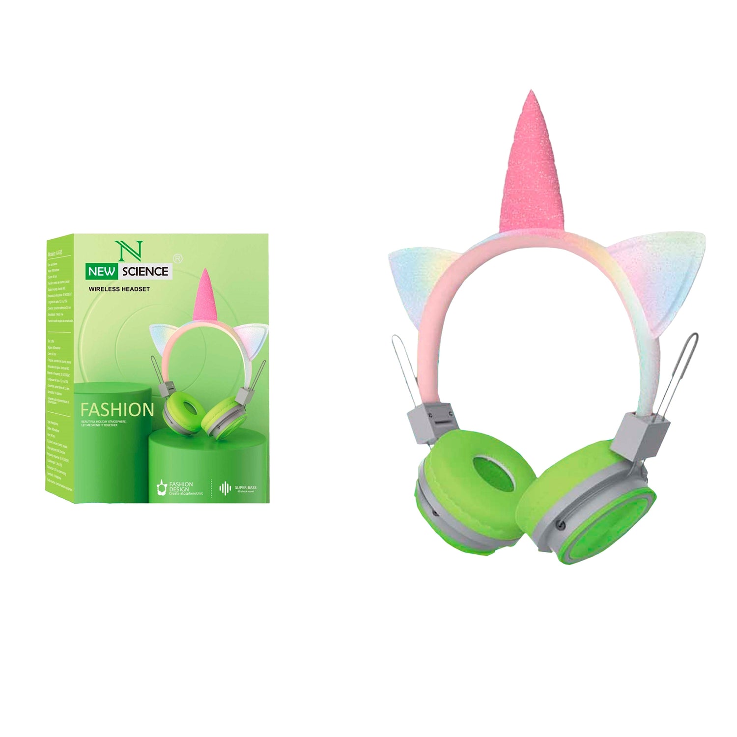 Headphones with Cable 3.5mm Jack Unicorn Design A-638 - Green is backordered and will ship as soon as it is back in stock.