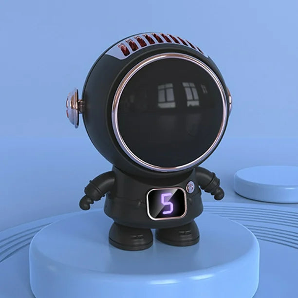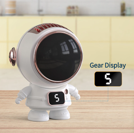 - Easy to operate: It has a cute astronaut design that adds flavor to your room. It also has an LED digital display that shows you the battery level and speed mode. You can charge it with any device or USB socket thanks to its USB recharging function. You can also switch between 5 speed levels to suit your mood.