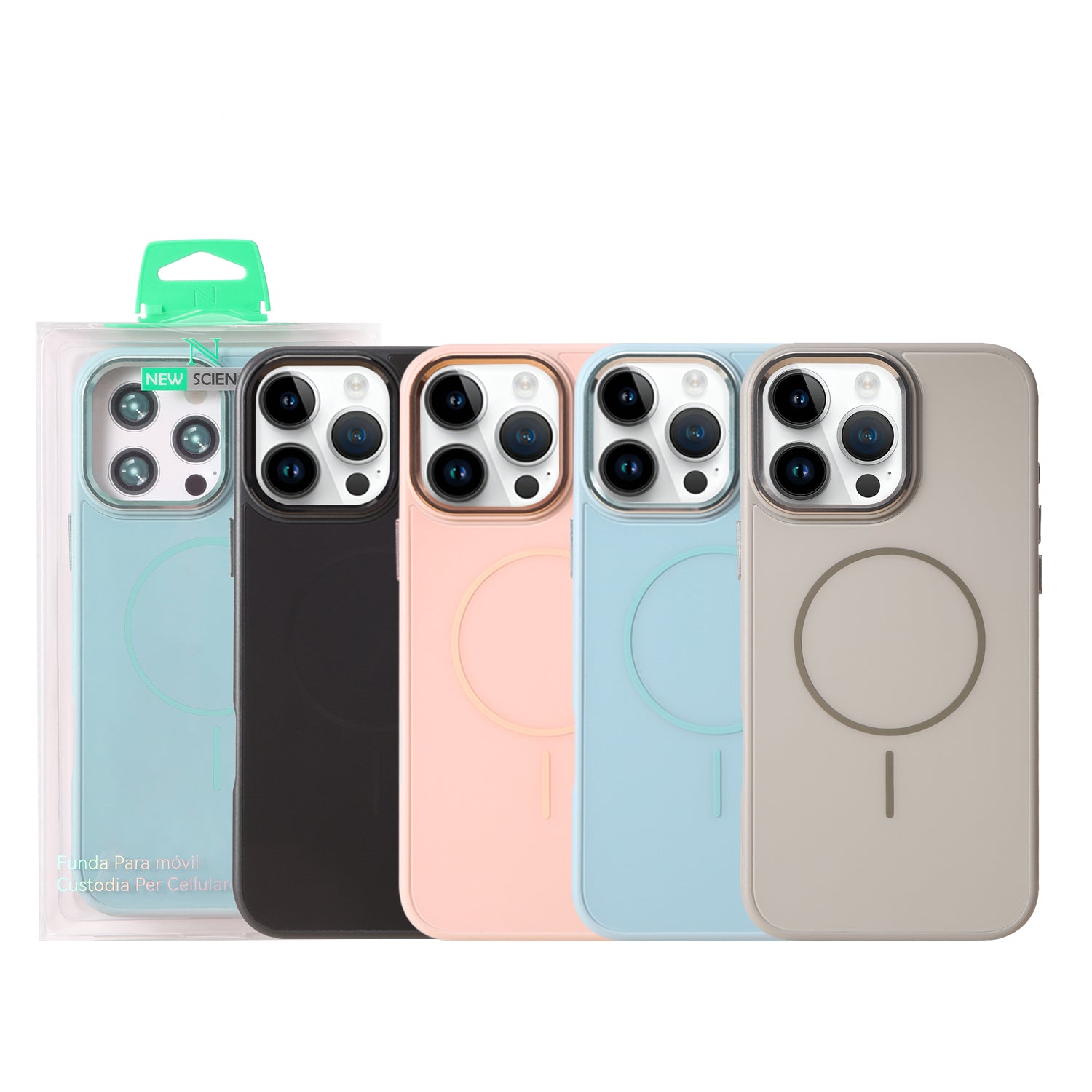 Protege tu móvil con esta funda magnética compatible con MagSafe, diseñada para un ajuste perfecto y una carga inalámbrica rápida. Fabricada con materiales resistentes y suaves al tacto, ofrece protección contra golpes, arañazos y caídas. Su diseño minimalista y disponible en varios colores elegantes (negro, beige, rosa y azul) se adapta a tu estilo sin añadir volumen innecesario.