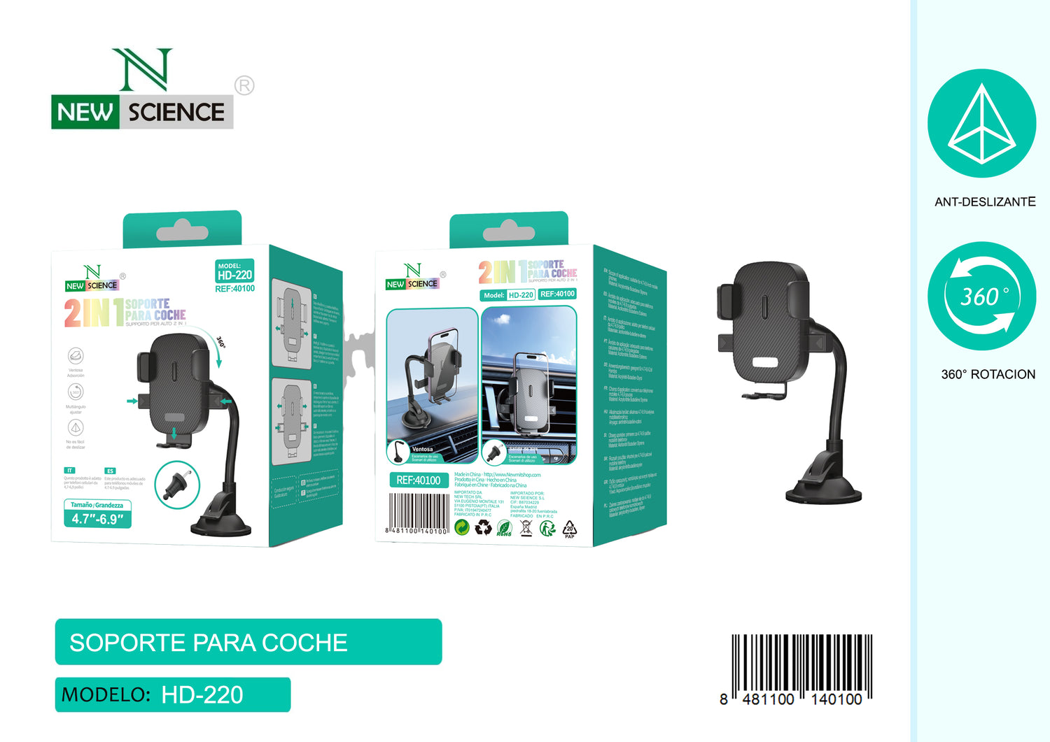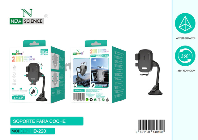 Soporte Coche 2en1 con Ventosa/Gancho HD-220