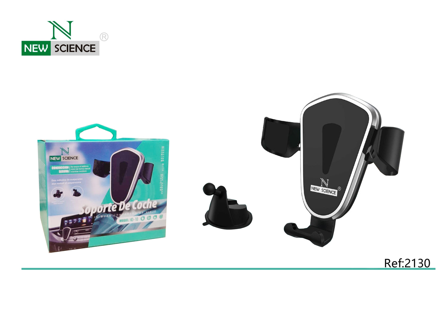 Soporte de móvil 2en1 que contiene dos formas de sujeción en su coche. Tiene ventosa para el salpicadero/luna de coche o pinza para la rejilla de aire acondicionado. Puede intercambiar a su gusto el componente del soporte para el uso que prefiera.