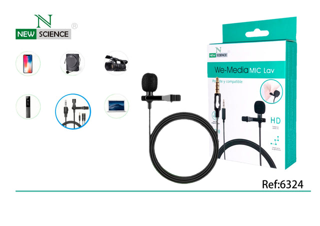Cabo de áudio para microfone com entrada de 3,5 mm