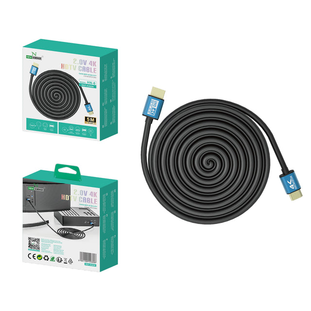 El Cable HDMI Metalizado 2.0V / Resolución 4K 5M Modelo: HN-6 es una opción ideal para quienes buscan una transmisión de video y audio de alta calidad a larga distancia. Con una longitud de 5 metros y soporte para la versión HDMI 2.0V, este cable es capaz de manejar señales de resolución 4K a 60Hz, ofreciendo una experiencia visual impresionante con colores vivos y detalles nítidos.