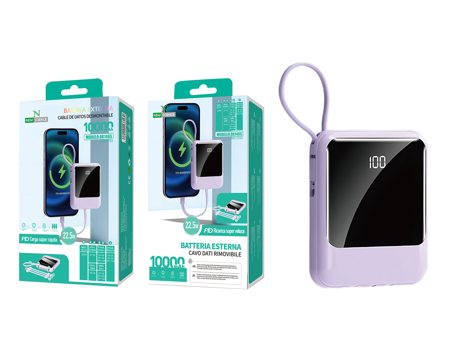 Banco de potência 10.000mAh 22,5W DX146S - Preto está esgotado e será enviado assim que estiver de novo em estoque.
