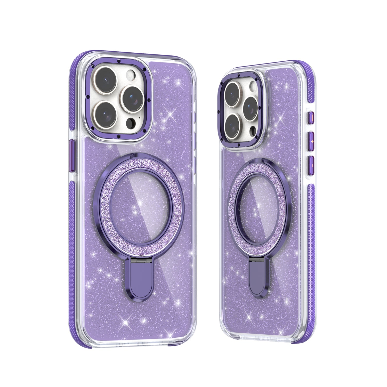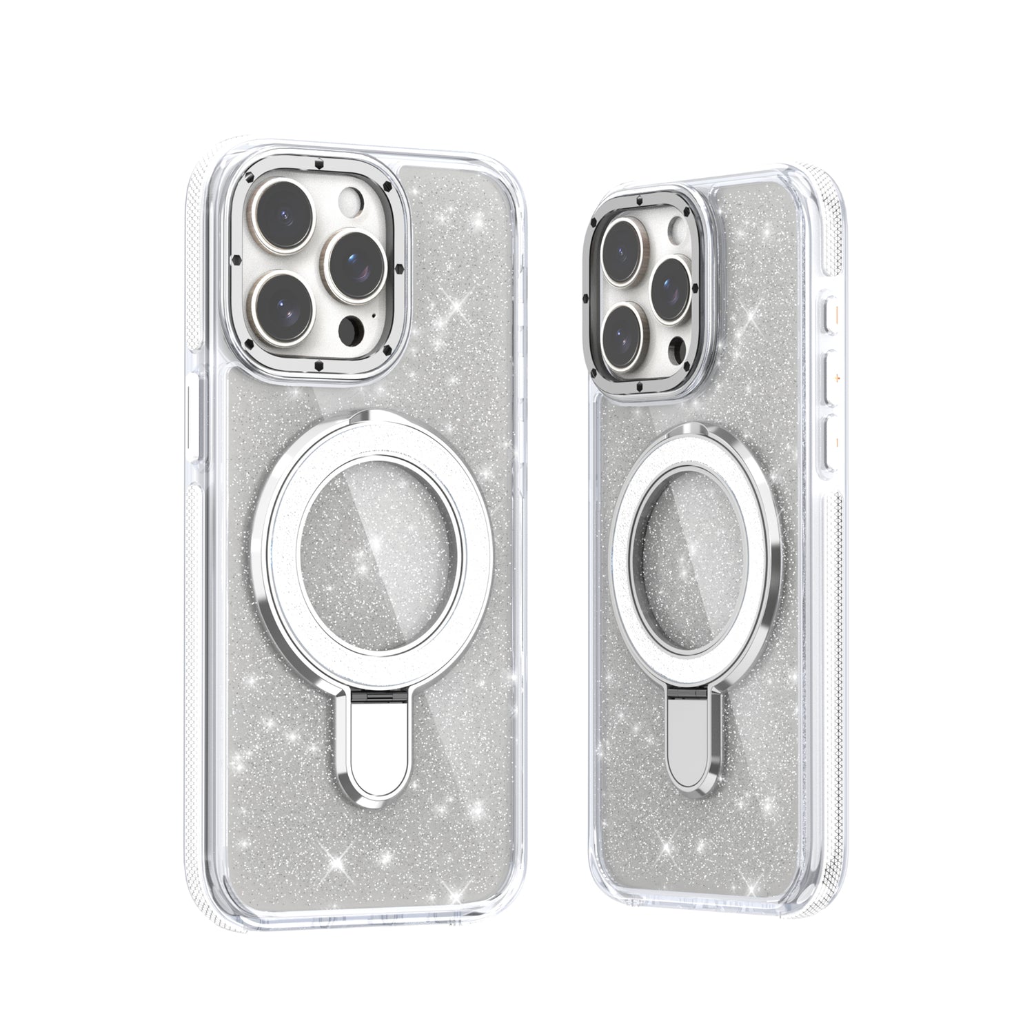 Capa Magsafe brilhante para iPhone 16 Pro com suporte de anel dobrável