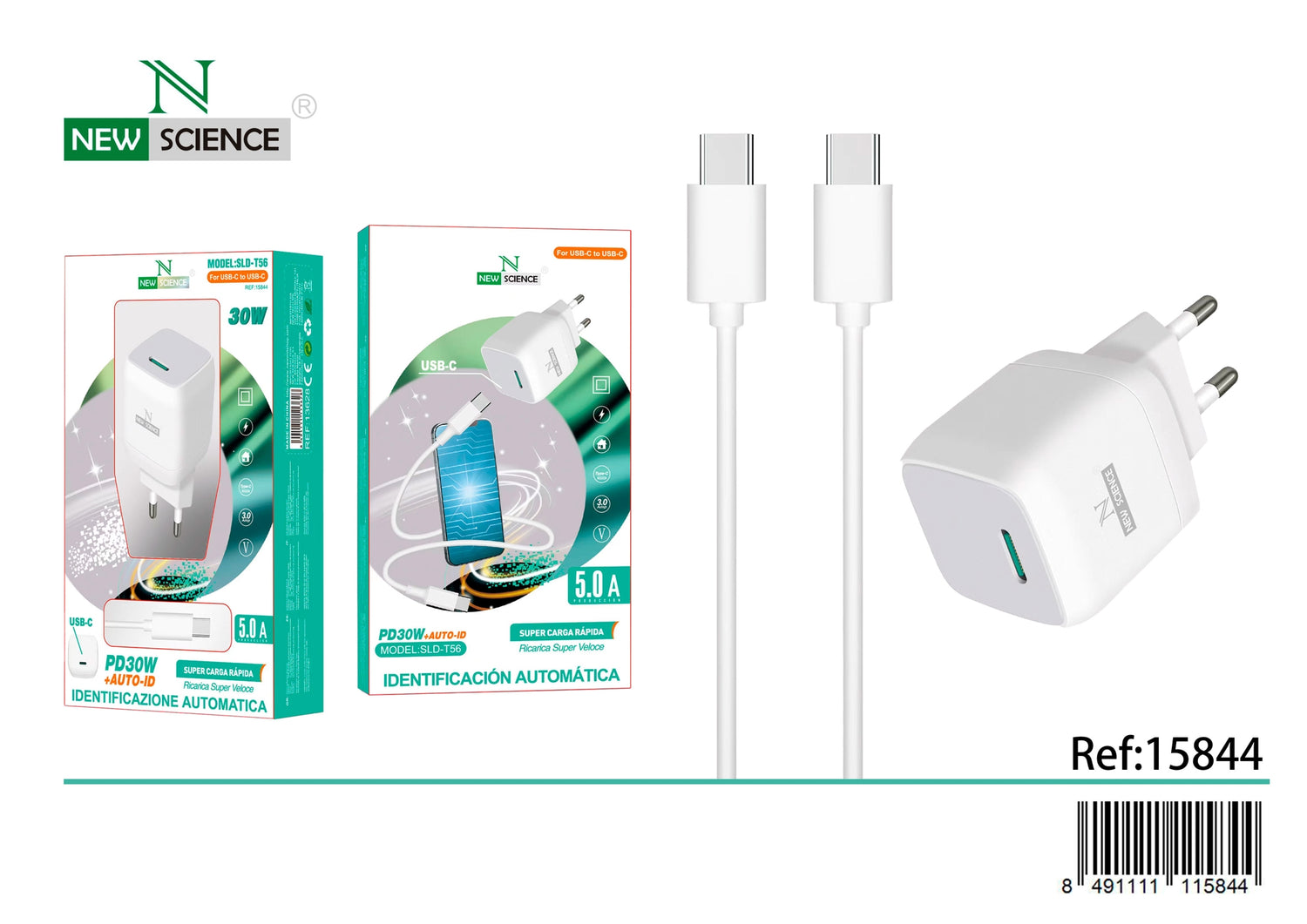 Un cargador PD (Power Delivery) USB-C de 30 vatios (W) para Type C diseñado para cargar eficientemente dispositivos compatibles con carga rápida. La tecnología Power Delivery permite una carga más rápida y eficiente al negociar automáticamente la potencia óptima entre el cargador y el dispositivo que se está cargando.