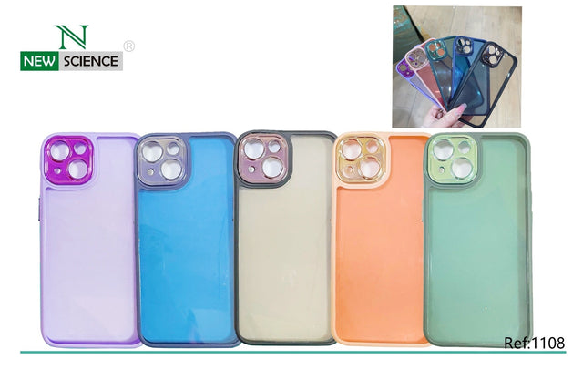 Carcasa de silicona transparente con bordes de colores.