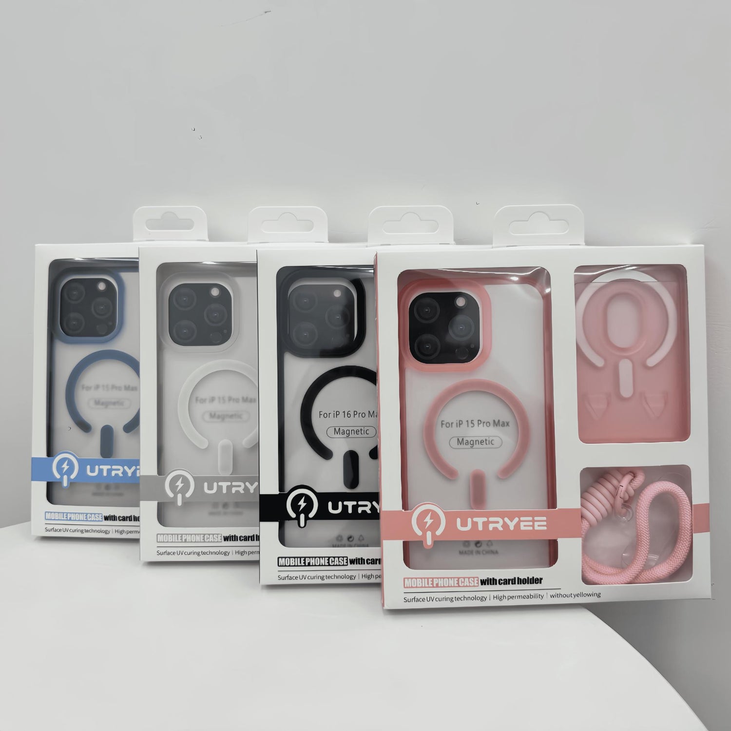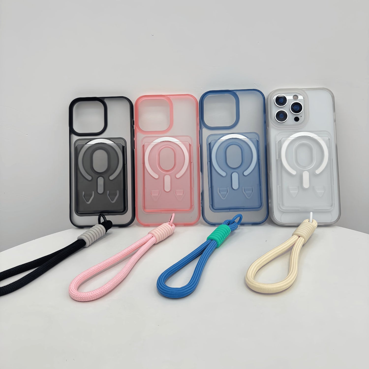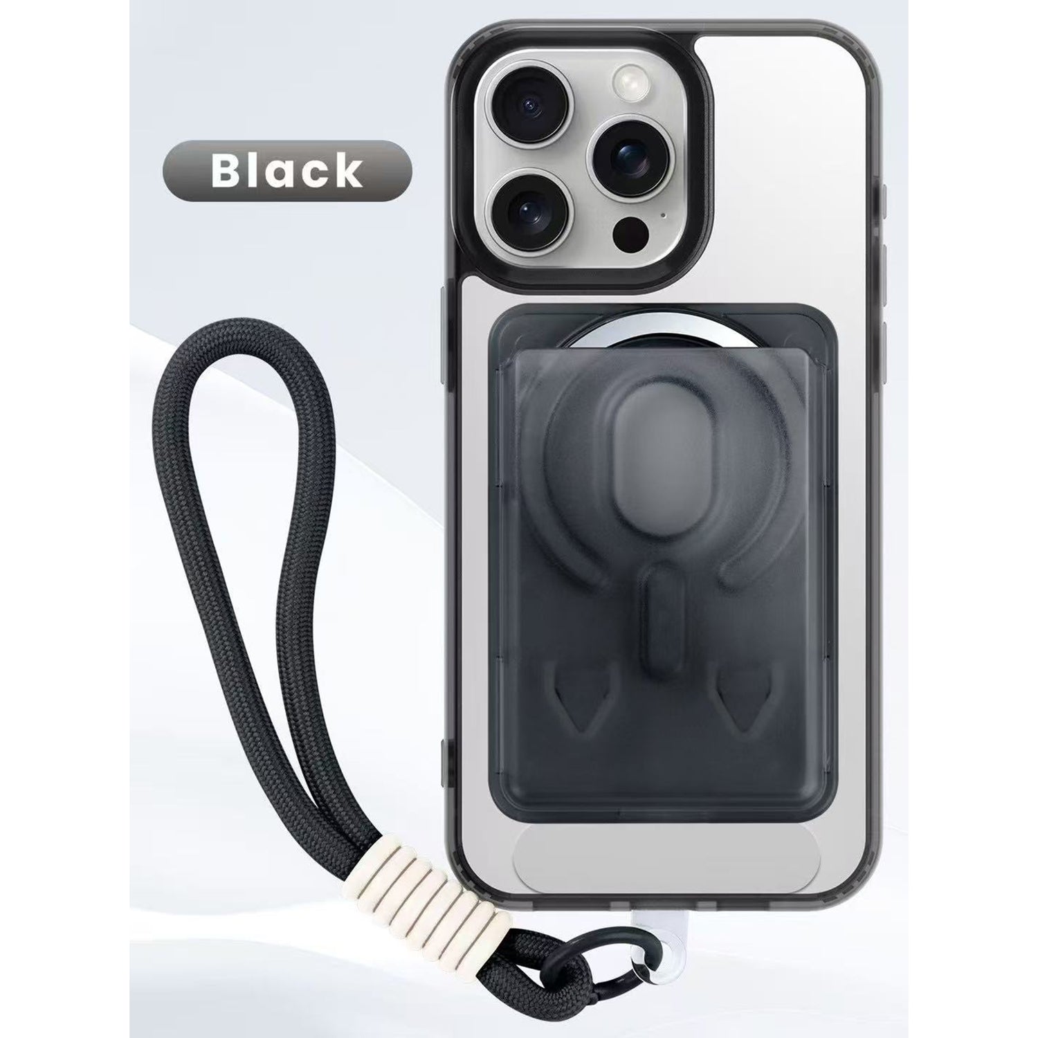 iPhone 15 Pro Max Funda magnética 3 en 1 con tarjetero y cuerda