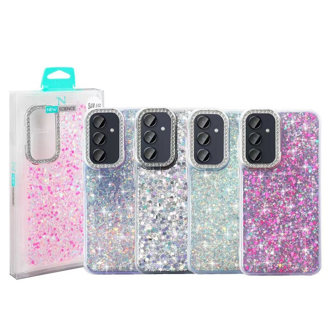 Esta funda combina elegancia y protección en un diseño único. Con partículas de glitter y borde de cámara con pedrería, ofrece un efecto brillante impresionante bajo la luz.Su material flexible absorbe impactos mientras protege la cámara con estilo. Ideal para quienes buscan destacar su móvil con glamour.